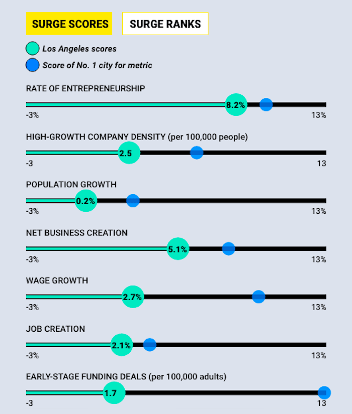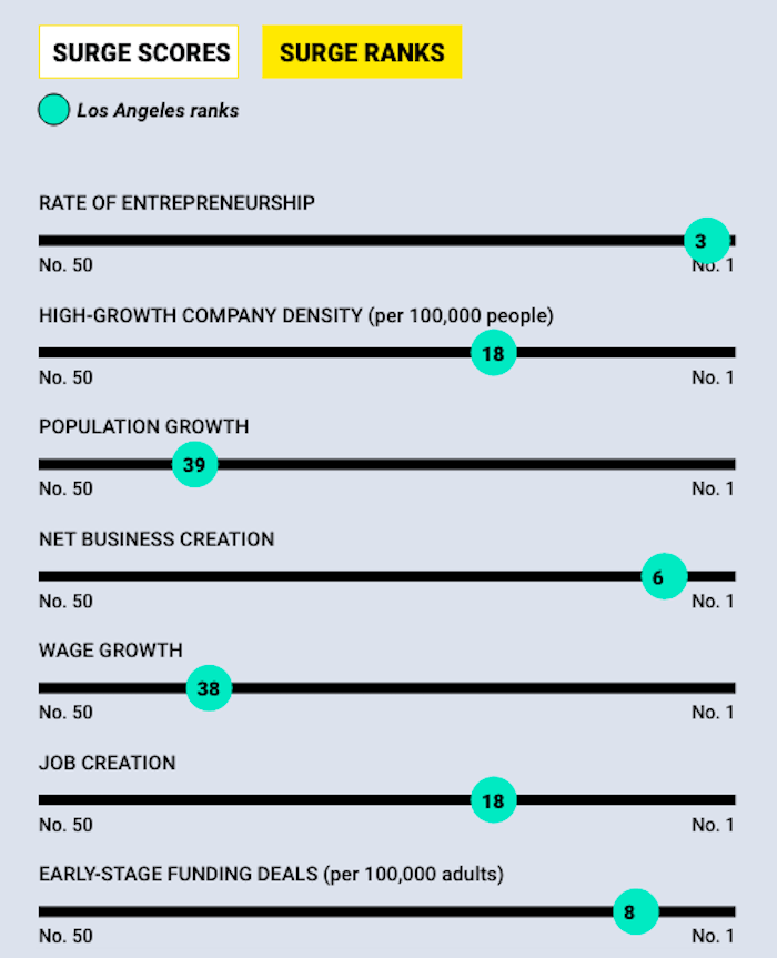 Here’s how the Surge Cities Index from Inc. ranks Los Angeles: