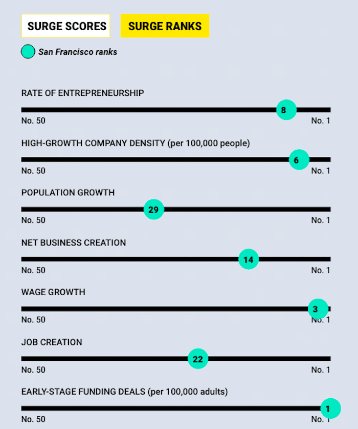 Here’s how the Surge Cities Index from Inc. ranks San Francisco: