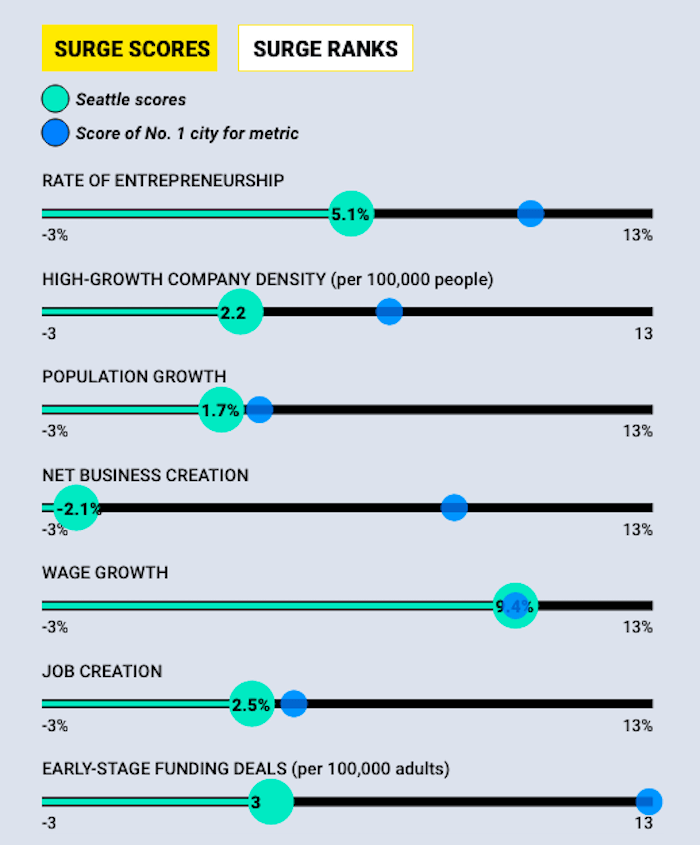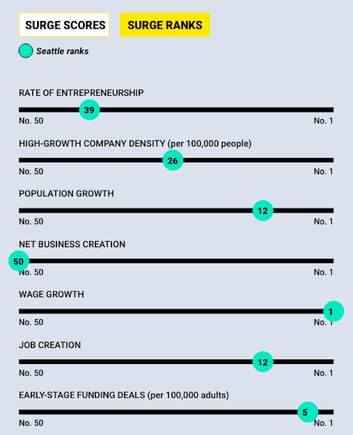 Here’s how the Surge Cities Index from Inc. ranks Seattle: