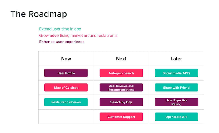 Who is reviewing this content, and what are they expecting? It’s beneficial to clearly define your audience before presenting your roadmap.