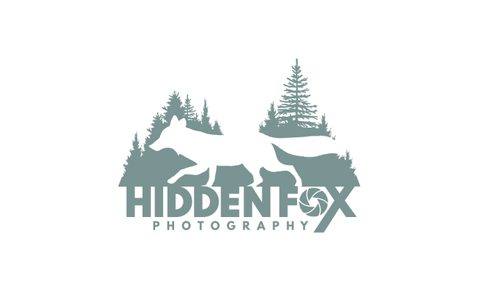 This logo for Hidden Fox Photography features a negative space fox silhouette prominently incorporated into the landscape behind it.