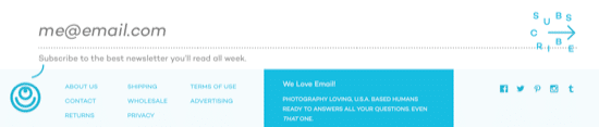 Photojojo incorporates whimsical elements like this subscribe button to inject personality into their website.