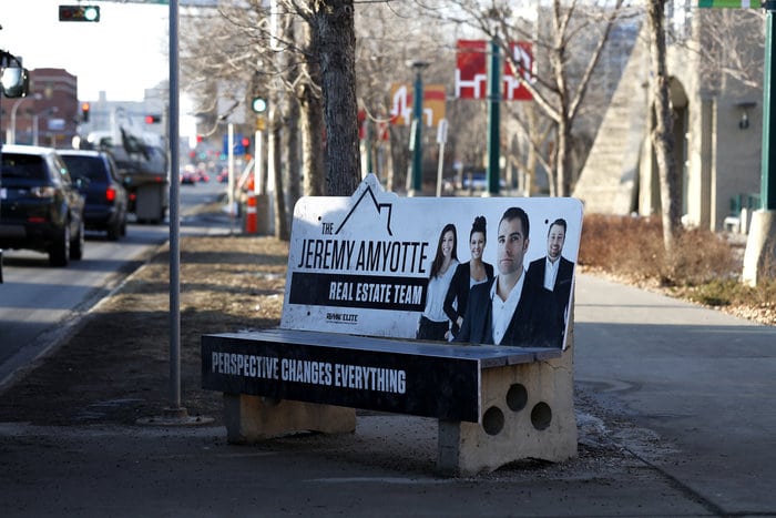 Unique bench signage. Image courtesy of The Jeremy Amyotte Real Estate Team.