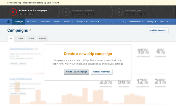 If you want to start a drip marketing campaign, Drip is a natural choice. The service focuses on the email analytics and automation portion of drip marketing, making it easy to create a campaign and track its performance.